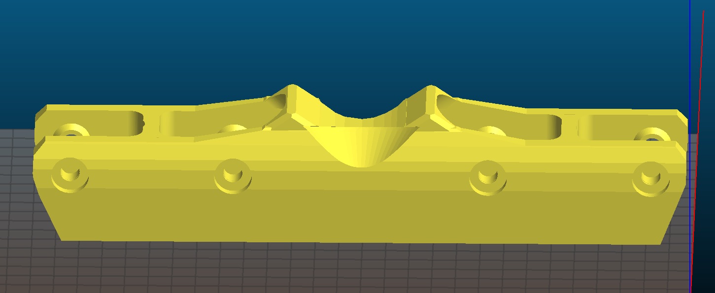 Print mount side-down/groove side-up with support, 100% rectilinear infill (yes, 100%!), 0.2mm layers, 3/4mm nozzle: you'll need a machine with an X or Y dimension of 280mm+. Be sure to bake the finished parts before use. 200°F for 10 minutes is probably a good starting point. Since the prints will probably shrink after baking, scaling to X and Y printing dimensions of 102% (or more) is recommended.